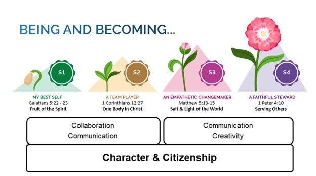 The CCE Curriculum is anchored on the school values of Godliness, Excellence and Love. It is delivered through lessons conducted during curriculum time (GEL lessons, Chapel and Daily Devotions) and student development experiences.